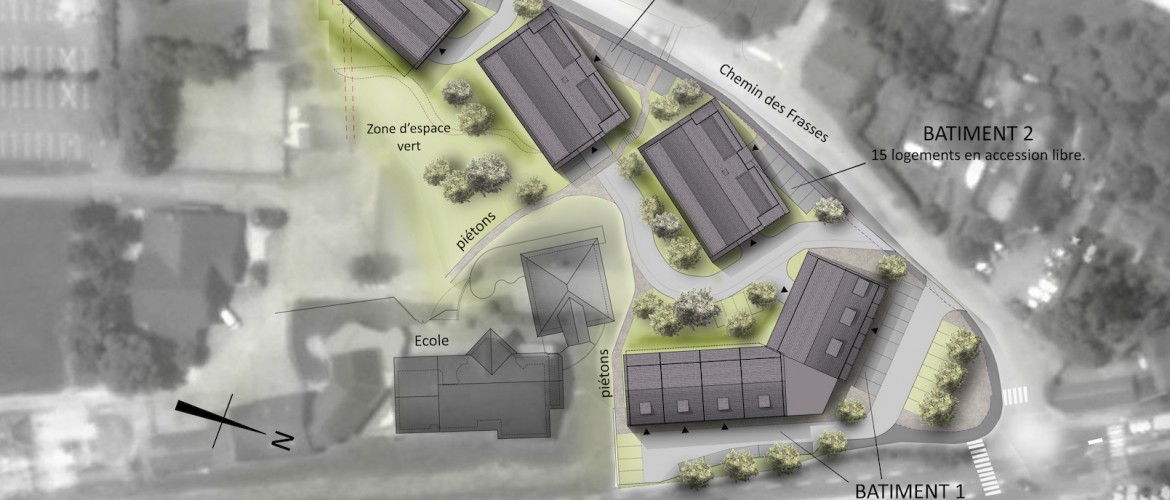 Concours pour la commune de ST JEOIRE PRIEURE – ZAC Des Frasses – 3ème Tranche : construction de deux programmes de logements en accession à la propriété et locatifs, et de commerces.