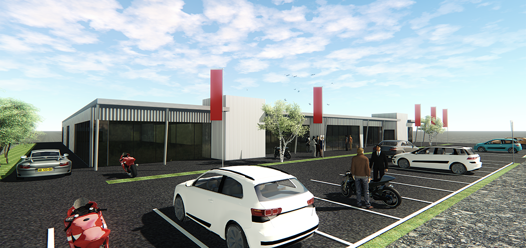 Le programme consiste en la construction d’un bâtiment commercial destiné à accueillir une concession motos multi-marques, un magasin d’accessoires ainsi qu’un atelier de réparations.